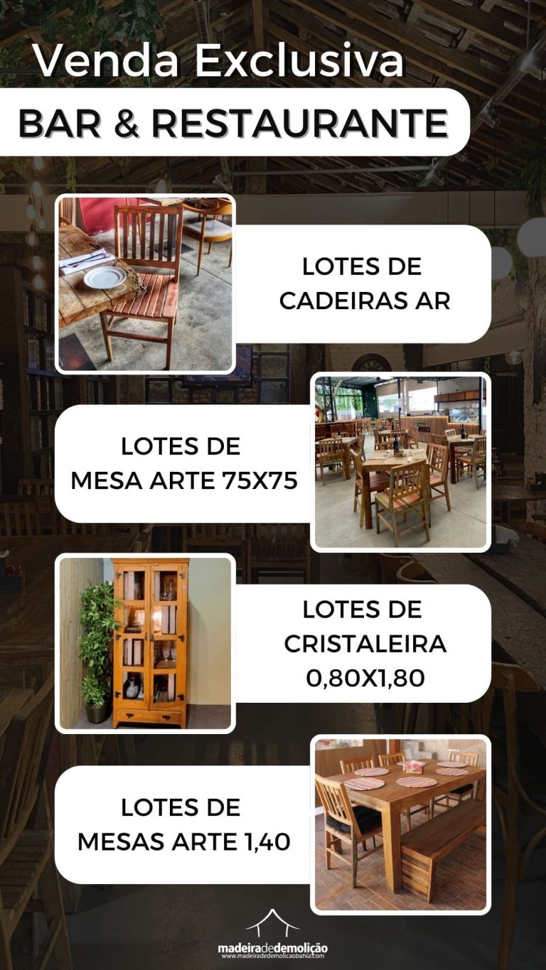 Baixe nosso catálogo, com as principais linhas em móveis de madeira de demolição.