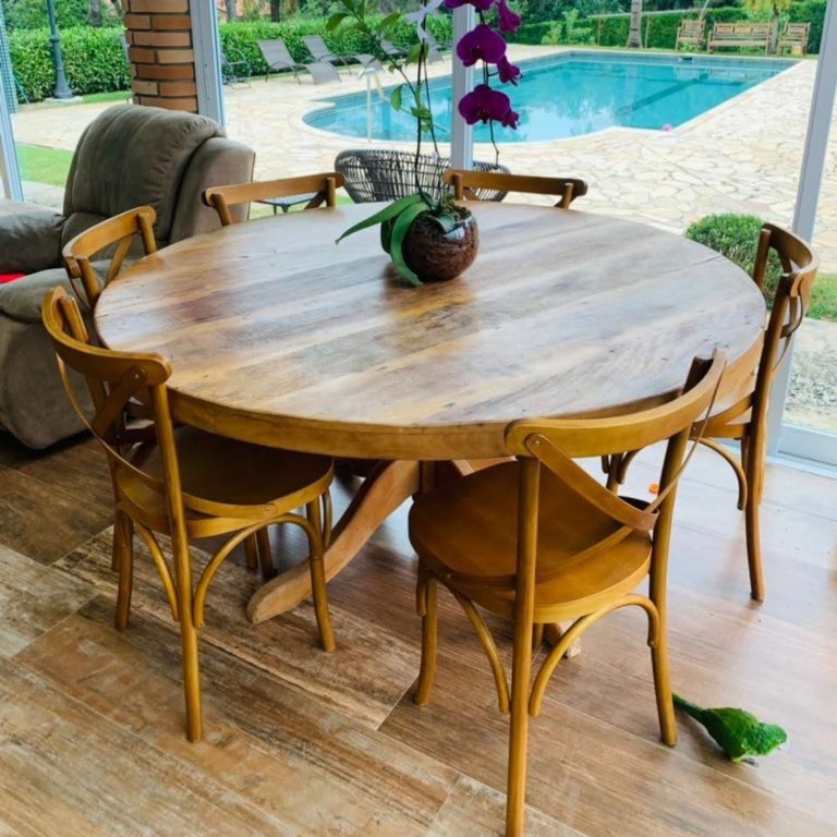 MESA JANTAR REDONDA PE TORNEADO NATURAL 1,40M